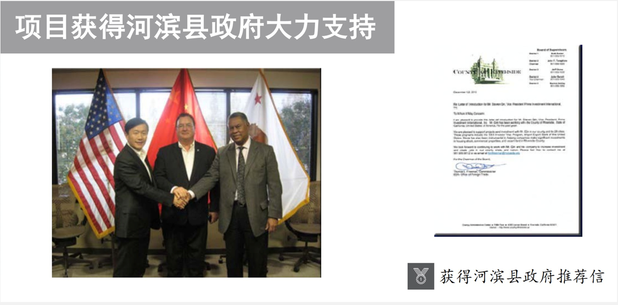 当地政府大力支持: 本项目得到当地河滨县政府的大力支持,且签发推荐信。